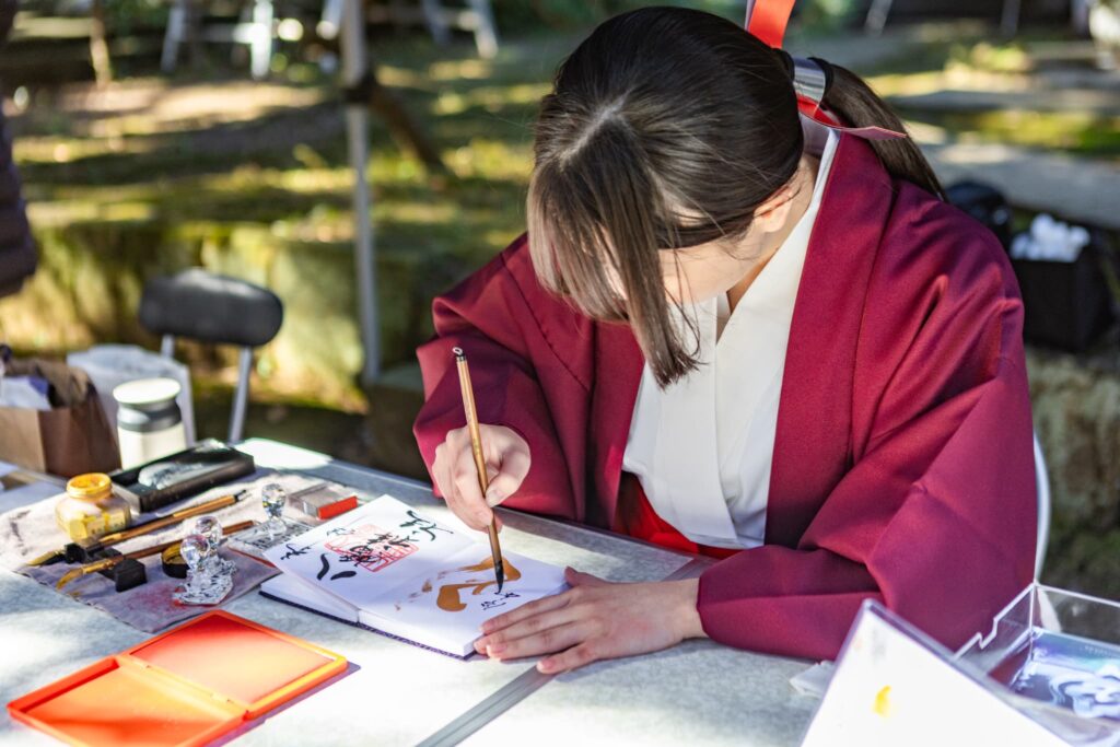巫女・莉艶(書道家)による